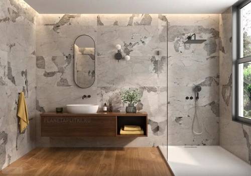 1. По традиции для отделки пола ванных комнат и санузлов используется максимально влагостойкие коллекции с наименее скользкой поверхностью, снижающей вероятность травм и падений;