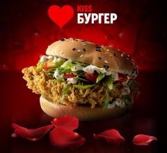 Kiss Бургер – смелое прочтение Шефбургера, одного из главных хитов KFC. В составе новинки также гармонично сочетаются нежный соус Цезарь, сочное филе из цельной курицы в оригинальной панировке, салат айcберг и помидоры на пшеничной булочке с черно-белым кунжутом. Главное отличие Kiss Бургера – дополнительная порция лука для проверки чувств влюбленных.