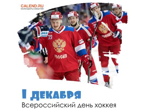 В первый день зимы, 1 декабря, проходит Всероссийский день хоккея. Один из любимейших видов спорта в России, воспетый в песнях, мультфильмах и кино. В хоккей играют смелые, мужественные парни с характером, они знают, что такое помощь товарищей и умение работать в команде. Хоккей — жесткая и техничная игра, настоящий мужской вид спорта. Победы российских спортсменов достойны уважения, русские хоккеисты продолжают традиции советского спорта, стремясь к победе и славе для своей страны.