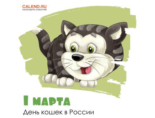 1 марта в России отмечают День кошек (или День мартовского кота). Все кошколюбы знают: кошачье мурчание — лучшее средство от депрессии. Кот — это лекарство от одиночества, пушистый будильник, а если он утром загадочно улыбается, тапочки лучше не надевать… А еще общеизвестно, что в твоем существовании мало смысла, если ты ни разу не мяукнул коту в ответ.