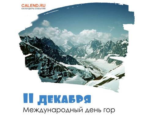 11 декабря проводится Международный день гор. В горах проживает около 15% от всего населения планеты. Забота о биоразнообразии горных экосистем, разумная эксплуатация горных районов и снижение «углеродного следа» — приоритеты движения к устойчивому экономическому развитию общества.