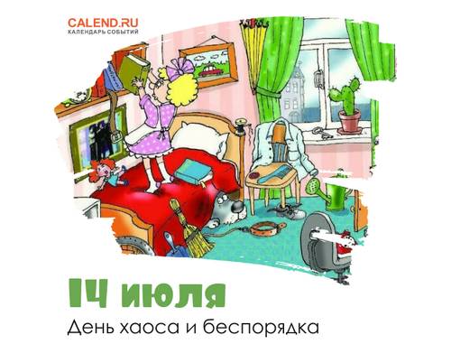 День хаоса и беспорядка ежегодно отмечается 14 июля. Этот праздник побуждает людей по-другому взглянуть на потрясения и перемены в своей жизни. Он напоминает о том, что хаос, неизменно сопровождающий нашу жизнь, является мощным потенциалом к творчеству, и именно хаос дает нам возможность увидеть новые пути решения тех ситуаций, которые прежде казались тупиковыми. Иными словами, хаос это и есть настоящая жизнь, в отличие от размеренности и распорядка, которые делают жизнь скучной. Позвольте себе найти положительные стороны во внезапно изменившихся обстоятельствах. Ведь гибкий подход к жизни гораздо полезнее для здоровья, чем переживания!