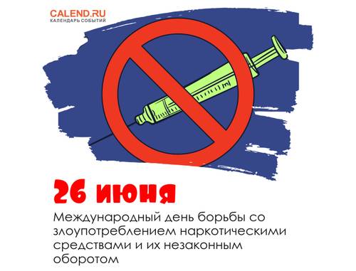 Международный день борьбы со злоупотреблением наркотическими средствами учрежден Генеральной Ассамблеей ООН в 1987 году. Несмотря на многолетнюю борьбу международного сообщества с этой проблемой, наркотики по-прежнему являются серьезной угрозой для благополучия всего человечества. Наркотические вещества способны разрушить личность человека, перечеркнув всю его дальнейшую жизнь. Организаторы Дня борьбы с наркотиками всемерно привлекают внимание людей к ужасным последствиям наркомании, пропагандируют здоровый образ жизни и проводят различные мероприятия под девизом «НЕТ наркотикам!»