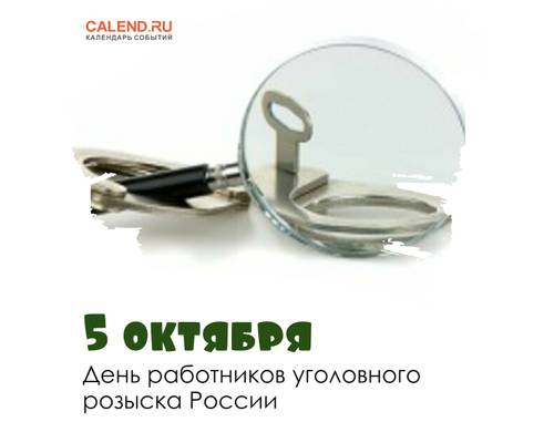 День работников уголовного розыска России отмечается 5 октября, в этот день в 1918 году было создано Центральное управление уголовного розыска — Центророзыск.