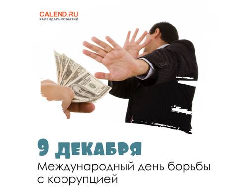 9 декабря проходит Международный день борьбы с коррупцией, в рамках которого проводятся акции и мероприятия, направленные на информирование населения о вреде коррупции и способах борьбы с ней.