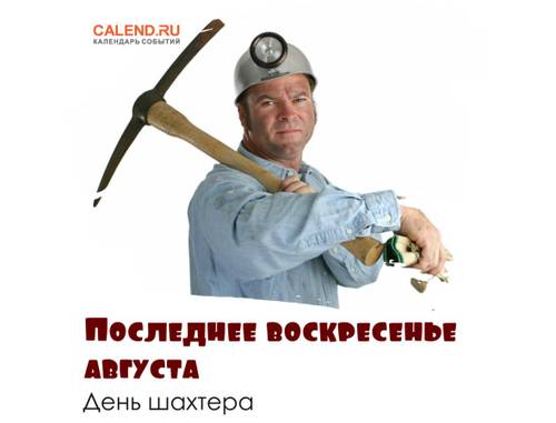 День шахтера отмечают в России и бывших советских республиках в последнее воскресенье августа. Кстати, время для праздника выбрано не случайно: в ночь с 30 на 31 августа 1935 года (это воскресенье) шахтер Алексей Стаханов установил рекорд, добыв 102 тонны угля при норме в 7 тонн.