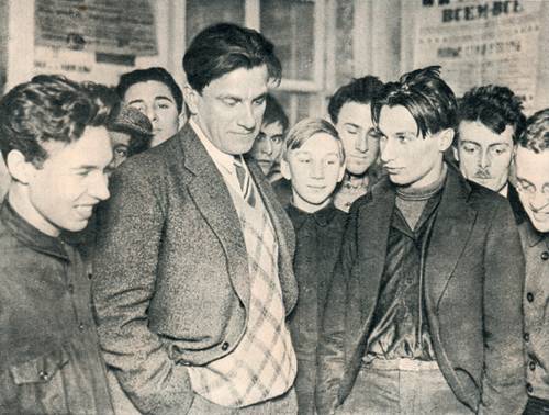 В. Маяковский на встрече с красноармейцами. Фото: общественное достояние