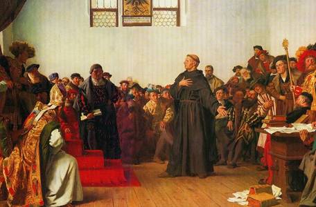 На Вормсском рейхстаге, куда реформатор был вызван императором Карлом V, он заявил: «Поскольку Ваше величество и вы, государи, желаете услышать простой ответ, я отвечу прямо и просто. Если я не буду убеждён свидетельствами Священного Писания и ясными доводами разума — ибо я не признаю авторитета ни пап, ни соборов, поскольку они противоречат друг другу, — совесть моя Словом Божьим связана. Я не могу и не хочу ни от чего отрекаться, потому что нехорошо и небезопасно поступать против совести. Бог да поможет мне. Аминь». Лютера отпустили из Вормса, поскольку ему предварительно была выдана императорская охранная грамота, но 26 мая 1521 года был издан Вормсский эдикт, осудивший Лютера как еретика.