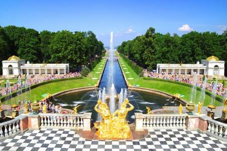 Ко времени торжественного открытия резиденции (4) 15 августа 1723 года был уже отделан Большой дворец, распланирован Нижний парк, прорыт Морской канал, действовала часть фонтанов, построены малые дворцы Монплезир и Марли, а также были почти готовы Эрмитаж, более 20 деревянных галерей и павильонов, различные трельяжные ограды.