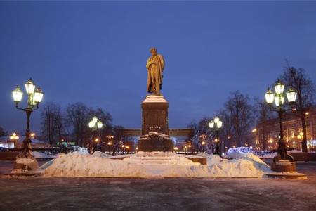 Этот памятник простоял на своем месте 70 лет, пока Советское правительство не решило приблизить его «к шуму городскому» и передвинуть прямо к улице Горького (бывшей Тверской) на место снесенной после Октябрьской революции колокольни Страстного монастыря.