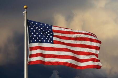 13 красно-белых полос на американском флаге обозначают тринадцать штатов, первоначально объединившихся и создавших в 1776 году США, а число звезд на синем поле флага соответствует числу штатов страны.
