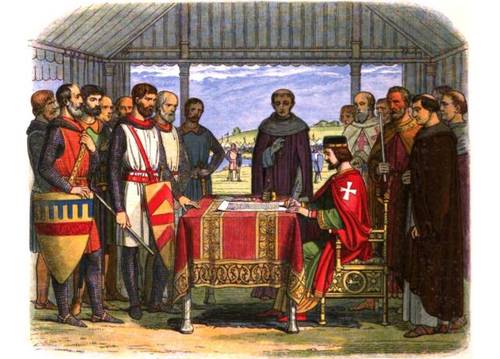 15 июня 1215 года группа восставших феодалов и духовенство при поддержке рыцарства и горожан вынудили английского короля Иоанна Безземельного подписать грамоту, получившую название «Великая хартия вольностей» (Magna carta). Ряд положений этого документа, гарантирующего королевским подданным определенные привилегии и права, сохраняют в Великобритании законную силу и по сей день.