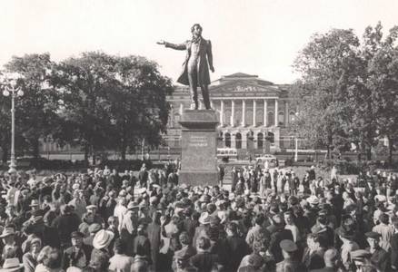 В 1940-е годы в СССР состоялись первые туры всесоюзного конкурса на лучший проект памятника Александру Сергеевичу Пушкину в Ленинграде (ныне Санкт-Петербург). Однако они не увенчались успехом. В 1949 году на IV открытом туре конкурса свой эскиз представил скульптор Михаил Аникушин. В результате он был утвержден комиссией.