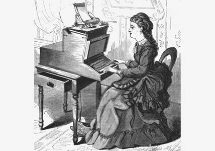 После Гражданской войны в США (1861-1865) фирма Remington, расширив ассортимент своей продукции, кроме оружия начала выпускать швейные машинки. Это отразилось и на моделях пишущих машинок: их украсили веселыми цветочными узорами и стали крепить на станину швейной машинки таким образом, что нажатие на педаль вызывало возврат каретки.