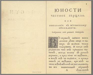 Учебник «Юности честное зерцало» (полное название «Юности честное зерцало, или Показание к житейскому обхождению, собранное от разных авторов») состоял из двух частей.