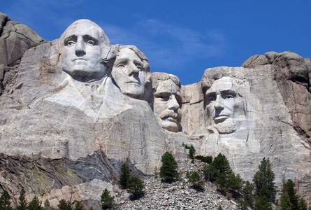Его сооружение началось 10 августа 1927 года. На горе высечены барельефы четырех американских президентов – Джорджа Вашингтона, Томаса Джефферсона, Авраама Линкольна и Теодора Рузвельта, олицетворяющих соответственно рождение, философию, объединение и экспансию нации.