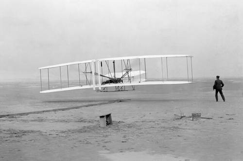 17 декабря 1903 года промозглым пасмурным утром на песчаной косе Китти-Хок у атлантического побережья США, близ местечка Килл-Девил-Хилл (штат Северная Каролина), братья Райт впервые успешно испытали свой летательный аппарат (до этого попытки были неудачными).