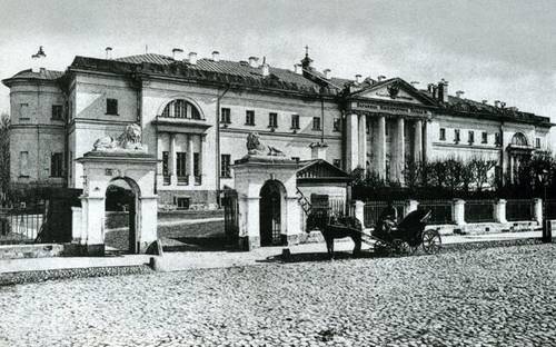 Первоначально больница была на «25 кроватей», но уже в 1766 году был выстроен большой деревянный корпус с церковью и 2 флигеля для служащих. В 1784 году этот корпус сгорел, а другие строения сильно обветшали. В 1807 году при содействии Марии Федоровны было построено большое каменное здание дворцового типа в 3 этажа и с церковью в центре, освященную в память апостолов Петра и Павла.