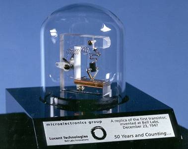 Первый действующий транзистор создали американские физики Уильям Шокли, Джон Бардин и Уолтер Браттейн в лабораториях Bell Labs в Мюррей-Хилл (штат Нью-Джерси, США) 16 декабря 1947 года, а спустя неделю — 23 декабря 1947 года — состоялось официальное представление изобретения, и именно эта дата считается днём изобретения транзистора.