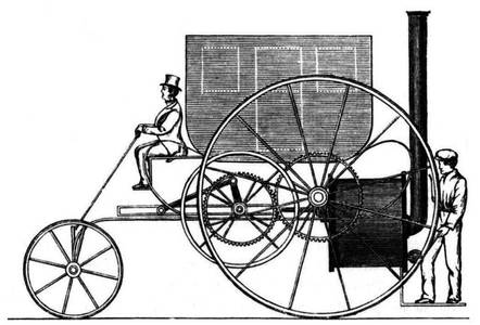Машина Тревитика была рассчитана на восемь пассажиров и приводилась в движение паровой машиной с одним горизонтальным цилиндром и котлом высокого давления на раме между двух огромных задних колес. Уголь в котел подбрасывал стоявший на запятках кочегар. В 1829 году паровики стали самым быстрым транспортом для пассажиров – скорость вместительных омнибусов достигала 24 км/ч.