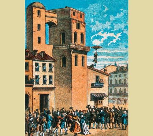 26 декабря 1783 года Ленорман прыгнул с крыши дома в Париже. Прыжок удался. Ободренный успехом, он вторично прыгнул уже со шпиля обсерватории в Мольпелье.