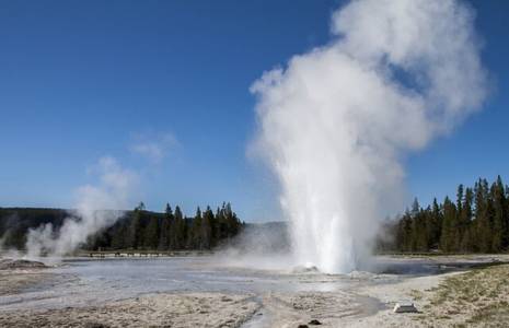 На территории парка есть самый высокий в мире действующий гейзер – «Пароход». Он выбрасывает столб горячей воды на высоту 122 метра. Еще один известный гейзер – «Старый служака». Этот гейзер получил свое название за то, что период его извержения составляет ровно час. Гейзер «Экселсиор» называют чудом Йеллоустонского парка. «Экселсиор» образуется в центре живописного озера со скалистыми берегами.