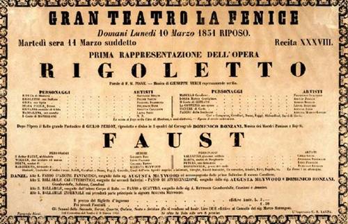 11 марта 1851 года на сцене венецианского театра «Ла Фениче» состоялась премьера оперы Джузеппе Верди «Риголетто» (итал. Rigoletto).