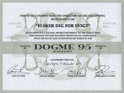 В этом манифесте провозглашалось рождение авангардного художественного направления под названием «Догма-95». К этому своему замыслу Ларс пришел во время работы над фильмами «Королевство» (1994) и «Королевство II» (1997), решив, что техника и стилистика менее важны и интересны зрителям, чем сюжет и персонажи.