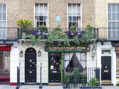 Музей Шерлока Холмса (англ. The Sherlock Holmes Museum) — первая в мире мемориальная квартира литературного персонажа. Он был открыт 27 марта 1990 года на Бейкер-стрит. У входа в музей посетителей встречает полицейский, он перепоручает их девушкам в строгих платьях времен королевы Виктории. Девушки продают билеты. Также гостей приглашают посетить крошечный ресторан «Миссис Хадсон», специализирующийся на блюдах викторианской эпохи.