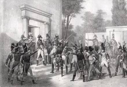 Так, путем заговора в верхах и опираясь на преданных ему военных, Наполеон под предлогом спасения Республики от мифических врагов назначил себя командующим Парижским военным округом и, разогнав высшие органы власти, установил режим диктатуры трех консулов.