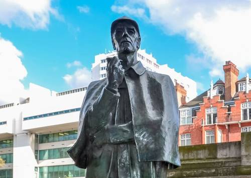 В Лондоне памятник самому известному в мире сыщику и детективу Шерлоку Холмсу был открыт 24 сентября 1999 года у станции метро на Бейкер-стрит. Холмс предстал задумчиво глядящим вдаль, одетым по дождливой лондонской погоде – в длинный плащ, шляпу с небольшими полями и с трубкой в правой руке. Автором трехметрового бронзового памятника стал известный английский скульптор Джон Даблдей.