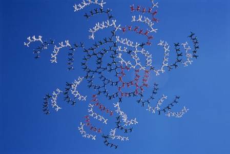 Построение больших формаций в свободном падении – один из зрелищных видов парашютного спорта.