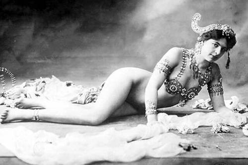 Некоторые танцы Маты Хари также представляли собой нечто близкое к современному стриптизу, тогда еще непривычному для западного зрителя. Самым знаменитым сегментом ее сценического номера было постепенное сбрасывание одежды, пока на ней не оставался только бюстгальтер и некоторые украшения на руках и голове.