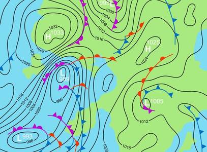 На первой карте были нарисованы линии равного давления-изобары, и обнаружилось, что линии имеют замкнутую форму и очерчивают области высокого и низкого давления, и именно они формируют погоду.