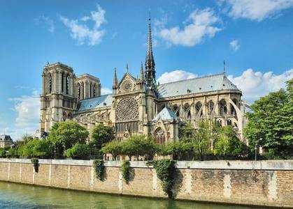 Строительство Кафедрального Собора Парижской Богоматери началось еще в 1163 году при Людовике VII и длилось практически два столетия. Единого мнения о том, кто именно заложил первый камень в фундамент этого сооружения, нет, но существует версия, что инициатором строительства собора, посвященного Богоматери, является архиепископ парижский Морис де Сюлли, которого на это дело благословил Папа римский Александр III. Главный алтарь собора был освящен в 1182 году, а строительство западного фронтона, с его отличительными двумя башнями, началось около 1200 года и закончилось спустя полвека, а всего собора – в 1345 году.