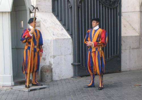 В Ватикане Швейцарская гвардия была создана по распоряжению Папы Римского Юлия II – отличного руководителя, установившего покой и порядок в церковном государстве, но который вошел в историю и как один из самых воинственных пап – он вел постоянные войны в течение всего понтификата (1503-1513). Поэтому, нуждаясь в верных воинах, он сделал выбор в пользу швейцарских солдат, поскольку своим соотечественникам не доверял из-за большой вероятности интриг.