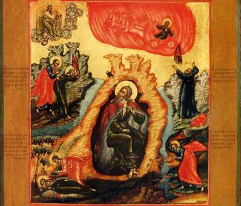 Илия — один из величайших пророков и первый девственник Ветхого Завета. Он родился в Фесвии Галаадской в колене Левиином, за 900 лет до Рождества Христова. Когда родился Илия, отцу его Соваку было видение, что благообразные мужи беседовали с младенцем, пеленали огнем и питали пламенем огненным.