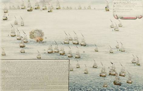 Русский флот, состоявший из 10 линейных кораблей, 6 фрегатов, 1 бомбардирского корабля, 20 вспомогательных судов, около 800 орудий, потерь в кораблях не имел, погибли 21 человек, 25 были ранены.