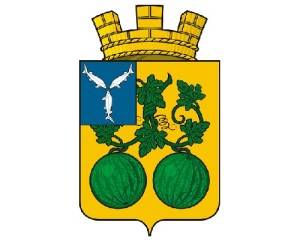 Флаг муниципального образования представляет собой желтое полотнище, ширина и длина которого соотносятся как 2:3; в центре которого – изображение главной эмблемы городского герба: двух арбузов, стебли которых вверху связаны; на каждом из стеблей – по три листа. Прорисовка эмблемы выполнена разными оттенками зеленого цвета. Оборотная сторона флага является зеркальным отображением его лицевой стороны.